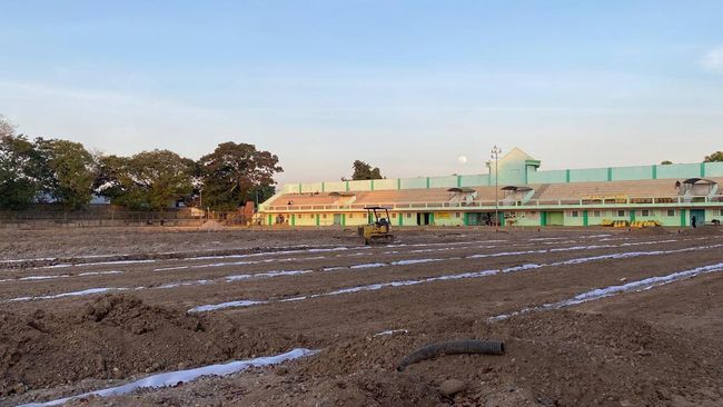 "Jadi kita ganti dengan rumput, bukan rumput sintetis, akan tetapi memang rumput yang dipergunakan untuk sarana prasarana olahraga," terangnya.