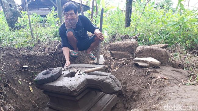 Penasaran dengan temuan telapak kaki arca itu, warga pun menggali tanah untuk mencari bagian tubuh arca. Namun warga malah menemukan yoni tanpa lingga.