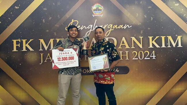 Penghargaan juara itu pun diserahkan langsung oleh Kepala Dinas Komunikasi dan Informatika (Diskominfo) Jawa Tengah, Riena Retnaningrum kepada Perwakilan KIM Kelahti Bersinar yang didampingi Kepala Diskominfo Klaten, Aris Pramana dalam acara Penganugerahan FK Metra dan KIM yang digelar di Hotel Khas Semarang, Selasa (8/10) kemarin.