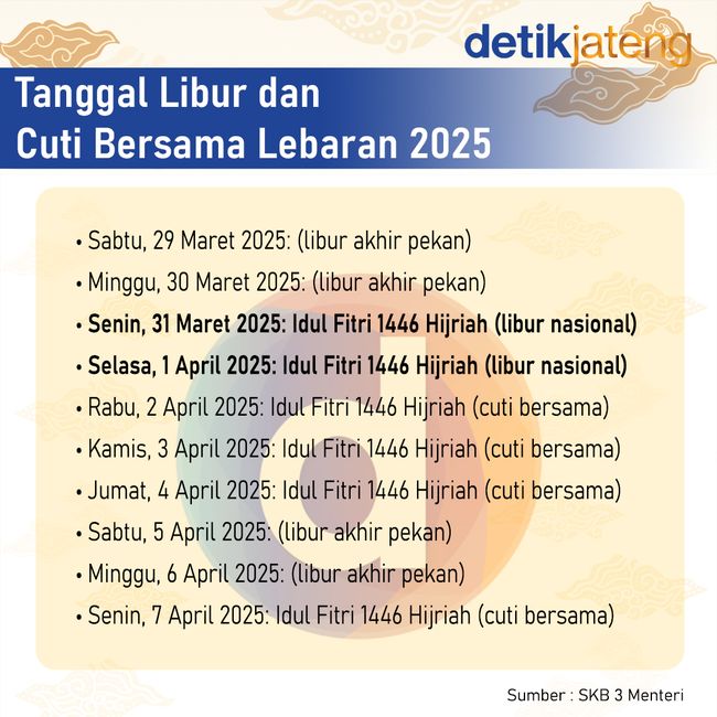 | Baca juga: Tanggal Libur dan Cuti Bersama Lebaran 2025 |