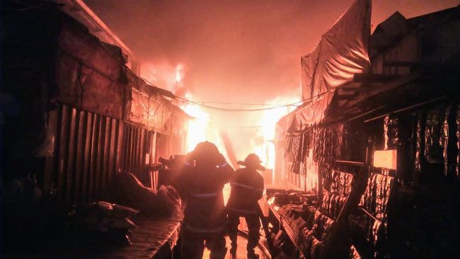 "Ludes kebakar semua di blok sebelah barat. Pasarnya kan besar ada timur ada barat, ini yang kebakar yang barat, blok barat. Ada ratusan kios. Ini masih menyala," pungkasnya.