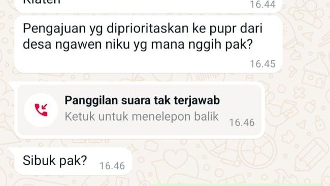 "Awalnya kirim WA dengan foto dan nama Pak Suryanto kemarin. WA itu menanyakan usul prioritas proyek yang diusulkan desa ke provinsi," ungkap Kepala Desa (Kades) Ngawen, Sofiq Ujianto kepada detikJateng, Jum'at (18/10/2024) sore.