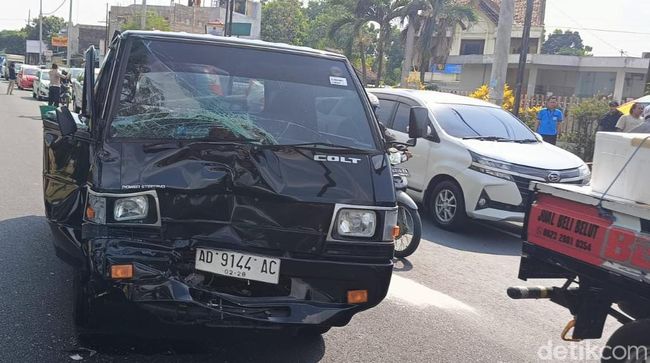 Kecelakaan beruntun terjadi di jalan Jogja-Solo ruas Desa Geneng, Kecamatan Prambanan, Klaten siang tadi. Sepeda motor diseruduk mobil Innova, sementara Innova ditabrak dari belakang oleh pikap L300.