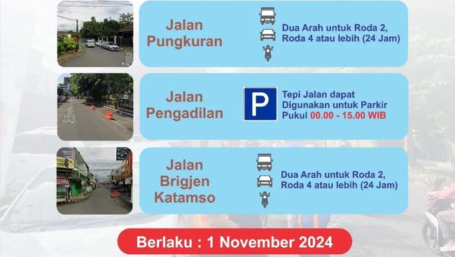 "Lalu Jalan Katamso juga yang kita evaluasi. Satu arahnya kurang efektif, jadi kita kembalikan menjadi dua arah lagi. Itu yang di Pasar Wage. Kemudian yang satu di Jalan Pungkuran. Kita buka total dua arah 24 jam. Sama seperti Jalan Katamso," lanjut dia.