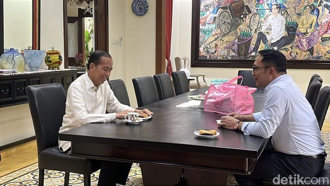 Calon gubernur (Cagub) DKI Jakarta nomor urut 01, Ridwan Kamil menemui Presiden ke-7 RI Joko Widodo (Jokowi) di kediaman pribadi di Sumber, Banjarsari, Solo. Ridwan Kamil datang sendirian tanpa ditemani Cawagub Suswono.