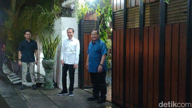 Presiden Prabowo Subianto menemui Presiden ke-7 Joko Widodo (Jokowi) di kediaman Sumber, Banjarsari, Solo. Usai tiba di kediaman Jokowi, Prabowo sempat berbincang dengan Jokowi empat mata.
