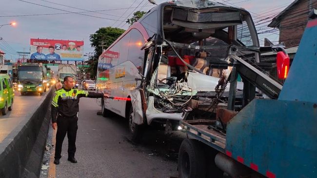 "Pengemudi bus mengalami nyeri gerak pada kaki kanan dan kiri, luka terbuka tungkai bawah dan nyeri di perut," terangnya.