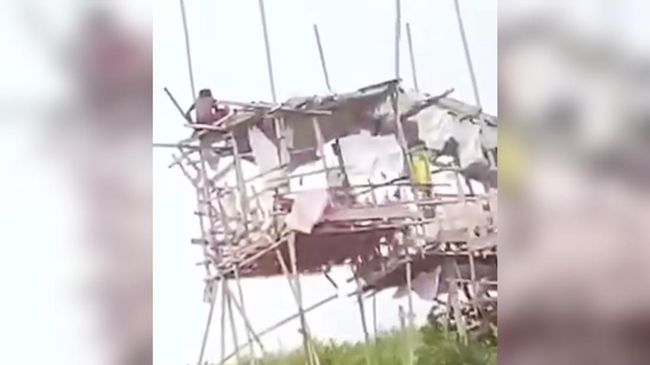 Aksi ODGJ itu dalam membangun 'rumah bertingkatnya' viral di media sosial, salah satunya diunggah @fakta.indo. Ada dua video yang diunggah, pertama memperlihatkan seorang pria yang sedang berada di atap rumah dan nampak sibuk merakit kayu.