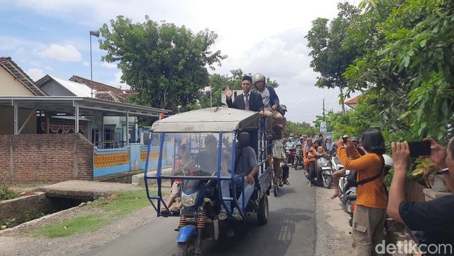 Setelah pelantikan selesai Slamet diarak menggunakan motor roda tiga menuju rumahnya Dusun Tapen Desa Tawangharjo. Warga terlihat antusias menyambut Kadus yang baru terpilih ini.