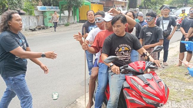 Pantauan detikJateng, lokasi pertama di Jalan Simongan. Di sana, empat tersangka yang memakai topeng bersama polisi terlihat memeragakan penyerahan senjata tajam. Mereka memperagakan peristiwa yang terjadi pada Minggu (24/11) dini hari lalu.