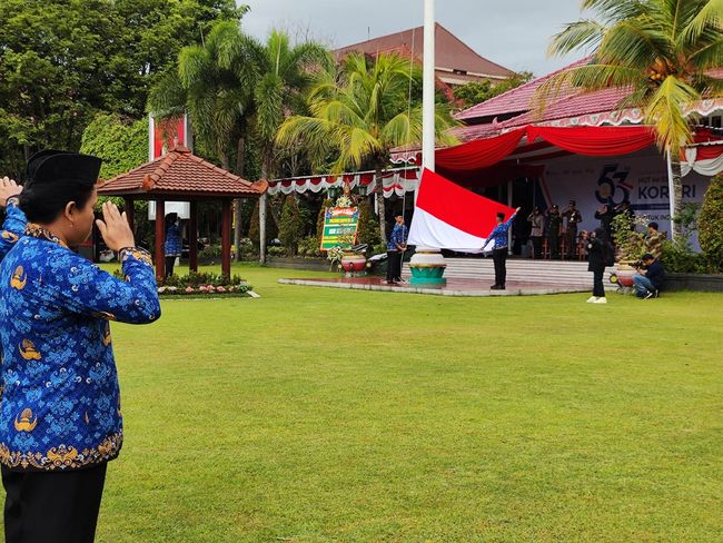Upacara Hari Ulang Tahun (HUT) ke-53 Korps Pegawai Republik Indonesia (Korpri) yang digelar Pemkab Klaten berlangsung lancar meski diguyur gerimis. Pada kesempatan itu, Bupati Klaten Sri Mulyani membacakan sambutan dari Ketua Umum Dewan Pengurus Korpri Nasional, Zudan Arif Fakrulloh.