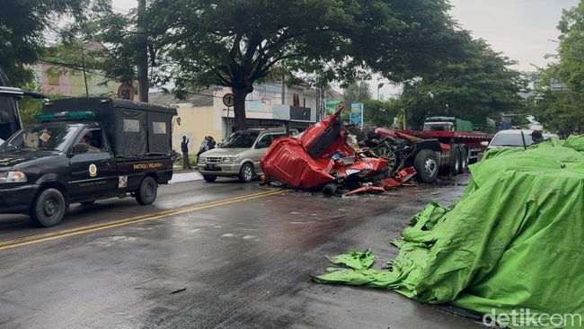 "Untuk kronologis kejadian kecelakaan yang mengakibatkan lempengan (muatan) jatuh yaitu pengemudi Bapak Budianto umur 59 tahun. Pengemudi berasal dari Semarang. Rencana untuk barang lempengan besi dibawa ke Jawa Timur, semula kbm tersebut dari arah Semarang ke arah timur yaitu ke arah Surabaya. Pengemudi kaget di depannya ada KBM mau belok, sehingga mengerem mendadak, sehingga muatannya terdorong ke depan, sehingga mengakibatkan kepala (kabin) kbm tersebut kena lempengan besi yang terdorong ke depan," terang AKP Sugito saat diwawancarai detikJateng di lokasi kecelakaan, Senin (2/12).