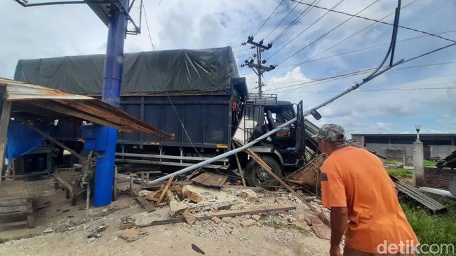 Pantauan detikJateng di lokasi, Selasa (3/12/2024), tampak truk fuso menabrak bangunan rumah dan warung di jalan Lingkar Pati tepatnya Desa Mustokoharjo Kecamatan Pati. Terlihat bangunan itu tampak rata ditabrak truk bermuatan makanan ringan dari Surabaya menuju ke Tegal.
