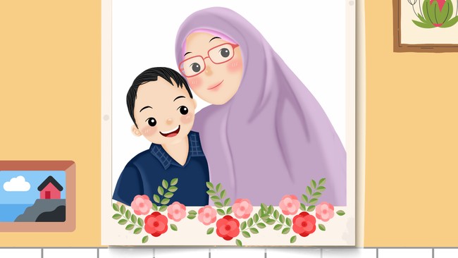 Gambar Ucapan Hari Ibu 2024 dengan Ilustrasi Ibu dan Anak