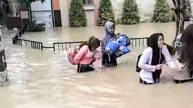 Banjir melanda Kebumen sejak pagi tadi. Ribuan warga terdampak dievakuasi ke tempat yang lebih aman.