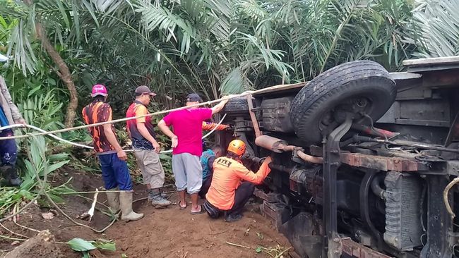 "Kondisi jalan menanjak dan menikung ke kanan. Diduga pengemudi terlambat pindah ke gigi rendah persneling sehingga bus tidak kuat dan mundur lalu masuk ke perkebunan salak milik warga," jelasnya.