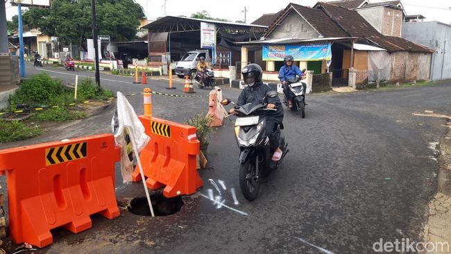 Lubang tersebut cukup dalam karena di bawahnya merupakan saluran drainase atau gorong-gorong. Diduga, gorong-gorong di tengah jalan itu ambrol, sehingga menciptakan lubang.