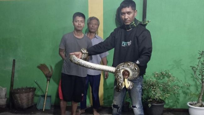 Beruntung, sebelum memangsa kambing, ular itu sudah berhasil dievakuasi. Janu mengatakan, panjang ular mencapai 3,5 meter.