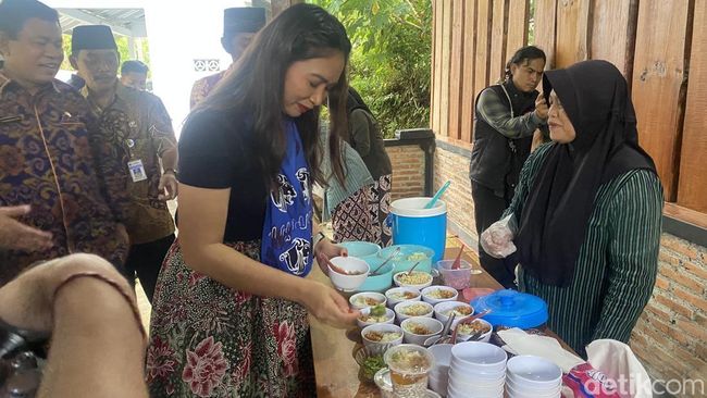 Wakil Menteri Pariwisata (Wamenpar) Ni Luh Enik Ernawati mengunjungi Desa Wisata Pandanrejo, Kaligesing, Purworejo. Ni Luh Puspa, sapaannya, mencicipi kuliner khas Desa Pandanrejo, salah satunya dawet goreng.