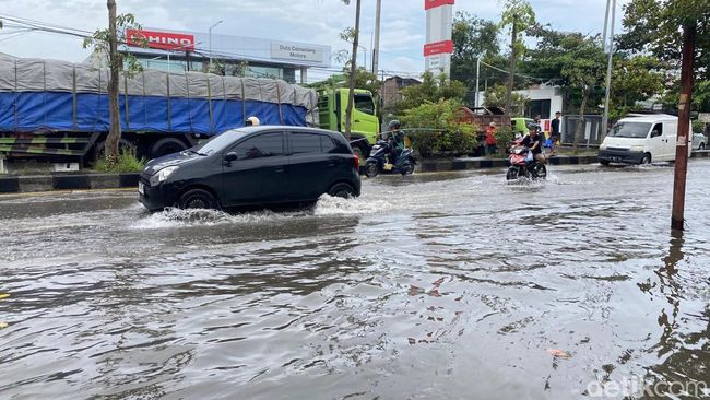Pantauan detikJateng di Jalan Kaligawe Raya sekitar pukul 10.30 WIB, air yang menggenang masih cukup tinggi mulai dari sekitar kawasan Kampung Semarang, Kecamatan Gayamsari.