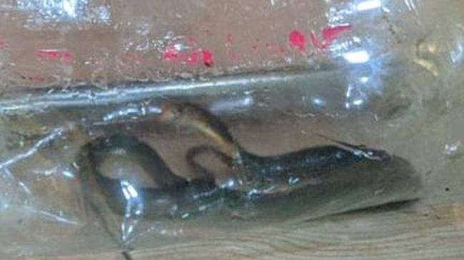 Ular itu masih anakan dengan panjang sekitar 35 sentimeter.