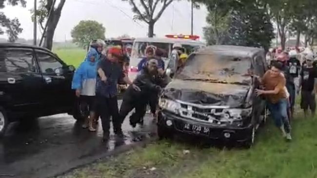 Mobil itu dikendarai Supriyanto (40). Di dalamnya ada tiga orang penumpang yakni Giyarti (39), E (13), dan D (10). Hendro mengatakan, akibat kejadian itu, ada penumpang yang mengalami luka ringan.