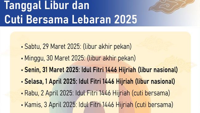 Demikian informasi lengkap mengenai jadwal libur nasional Lebaran 2025 dan cuti bersamanya. Semoga bermanfaat!