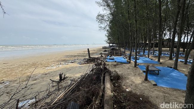 "Semenjak abrasi ini jadi sepi pengunjungnya. Gazebo-gazebo pada ambruk. Tahun 2023 itu pendapatan (Pengelola) dari sini sampai Rp 100 juta, tapi 2024 ini turun 50 persen. Dapat Rp 50 juta. Itu per tahun. Pedagang-pedagang di sini juga pada mengeluh semua. Pendapatannya sepi," imbuhnya.