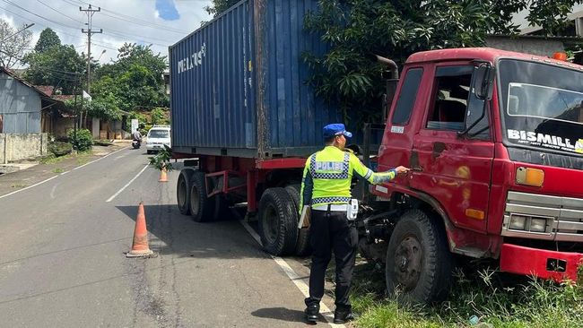 "Laka kontainer di Mantingan Jepara. Diduga kontainer merah rem blong dan berusaha dihentikan kontainer warna hijau," tulis postingan itu seperti dilihat detikJateng, Sabtu (15/2/2025).