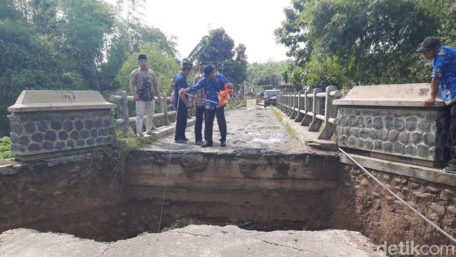 "Terus kemudian tiang jembatan ini tergerus air. Jembatan dibangun sudah lama banget sekitar tahun 1990-an, akhirnya ambrol ini," jelasnya.