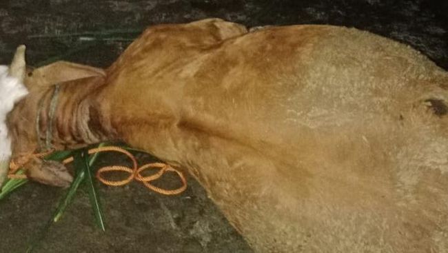 Saat di kandang, lanjut Martono, sapi yang satu sudah tidak bergerak. Sapi satunya lagi masih sempat bergerak-gerak.