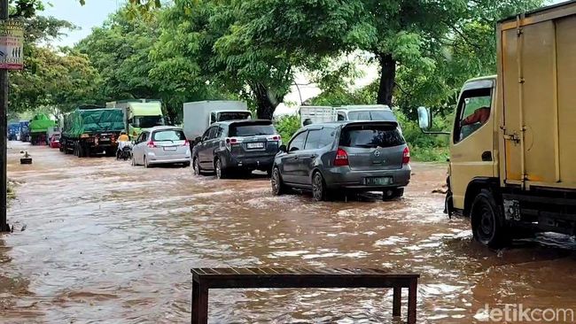 Pantauan detikJateng di lokasi pukul 15.30 WIB genangan banjir merendam permukiman jalan Pantura Pati-Juwana. Genangan banjir di jalanan mencapai 20 sentimeter.