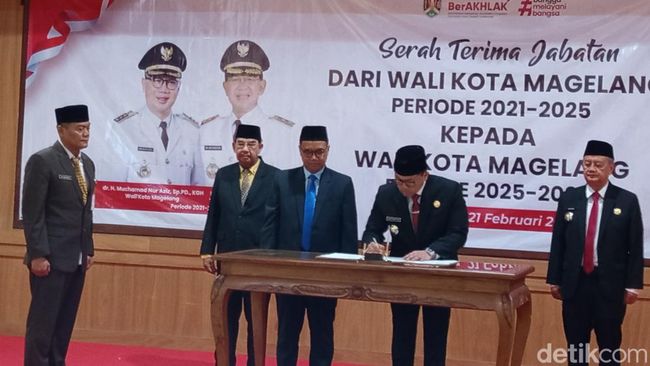 "(Instruksi PDIP) Oh kita nunggu lah. Hari ini sampai sore kita tunggu dulu. Saya belum bisa ngomong panjang lebar di sini," kata Damar usai sertijab Wali Kota dari Muchamad Nur Aziz kepada dirinya di Gedung Adipura Pemkot Magelang, Jumat (21/2/2025).
