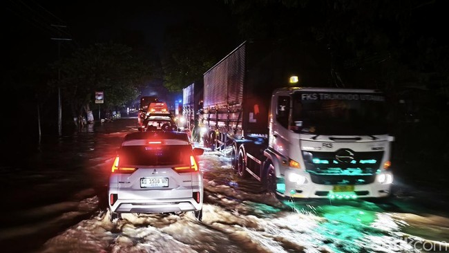 Sementara itu, sejumlah kendaraan memilih untuk menepi sambil melihat kondisi yang ada. Titik paling dalam berada di simpang tiga Songgorunggi dengan ketinggian sekitar 50 sentimeter.