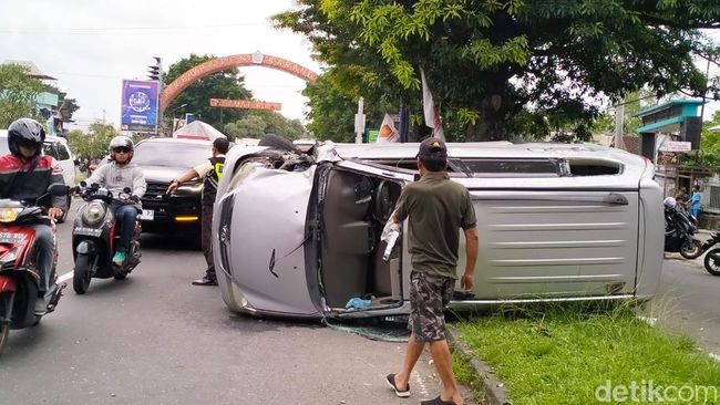 Sebuah kendaraan jenis Toyota Avanza terguling di kawasan Palur, tepatnya di depan kampus Unsa di Kecamatan Jaten, Kabupaten Karanganyar. Mobil itu terguling usai bertabrakan dengan motor jenis Kawasaki Ninja.