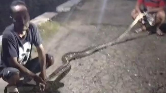 Ular tersebut kemudian ditangkap dan dinaikkan ke daratan. Panjang ular setelah diukur sekitar empat meter.
