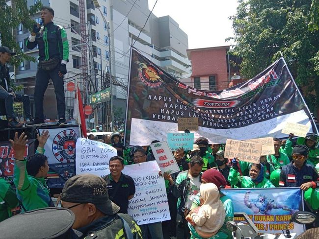 "Kami ingin pemerintah daerah turun tangan dan menegur aplikator. Minimal satu atau dua dari tuntutan kami bisa dikabulkan," ujar Ivan.