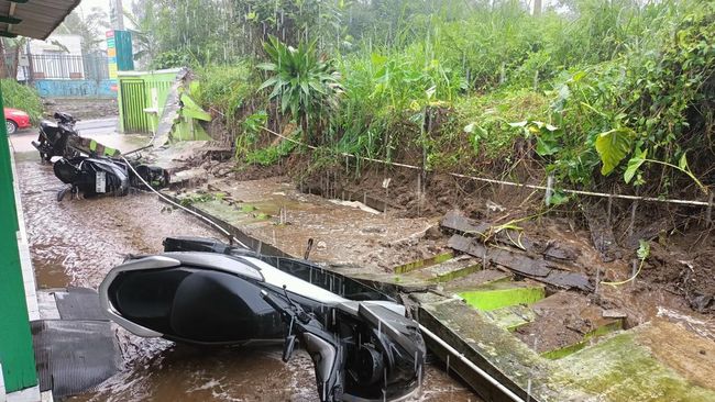 Mereka pun tak dapat langsung menyelamatkan motor yang ikut jatuh tertimpa. Karena kondisi cuaca masih diguyur hujan. Setelah hujan mereda, baru kemudian dievakuasi.