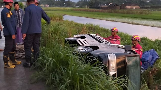 Mobil sempat terguling di sawah hingga akhirnya dievakuasi petugas bersama warga menggunakan firedome. Dia menyebut dua orang yang ada di mobil itu selamat.
