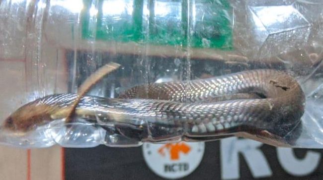 Ngadino menyatakan ular bisa dievakuasi dari dalam kamar. Setelah ditangkap ternyata jenis kobra Jawa atau naja sputatrix anakan.