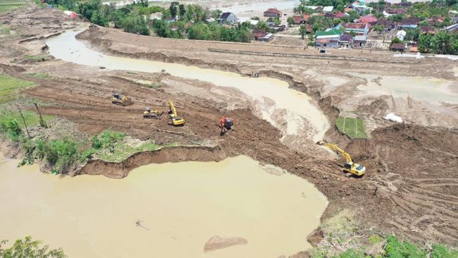 "Perbaikan jalan ini baru bisa dilakukan setelah tanggul benar-benar diperbaiki agar tidak terjadi kerusakan lebih lanjut, tadi itu masih kedalaman 3 meter di jalan," jelas Wahyu.