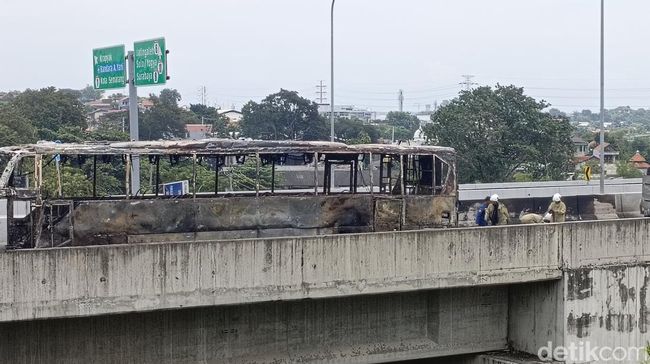 Pantauan detikJateng, Jumat (21/3/2025) pukul 12.28 WIB, bus yang hangus terbakar itu sudah dalam penanganan pihak tol dan diderek dari lokasi. Sudah tak tampak nyala api dari bus tersebut.