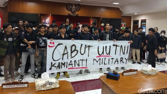 "Sebetulnya tuntutan kami di luar (gedung DPRD) adalah untuk supaya Ketua DPRD atau Wali Kota Magelang hadir menemui kami. Karena tuntutan kami pada hari ini adalah kami bersama dengan DPRD Kota Magelang yang diwakili oleh Ketua DPRD sama-sama menyatakan penolakan terhadap UU TNI bersama mahasiswa dan masyarakat Magelang," kata Koordinator Umum Aksi, Achmad Rizky Airlangga kepada wartawan di DPRD Kota Magelang, Jumat (21/3/2025).
