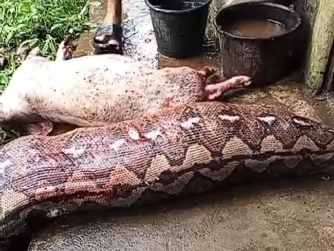 Seekor ular piton dengan panjang 6,5 meter bikin geger warga di Bolaang Mongondow (Bolmong), Sulawesi Utara (Sulut). Ular itu dibunuh setelah memakan 3 ekor babi dalam kandang.
