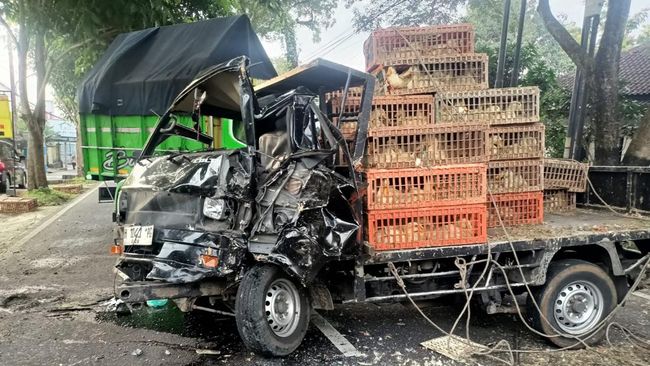 Akibat kecelakaan ini bodi depan pikap ringsek. Kemudian sebagian muatan sempat berceceran di jalan.