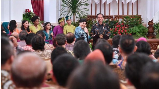 Dalam momen itu, Titiek Puspa melontarkan candaan kepada Jokowi. Keduanya pun terlihat tertawa bersama dalam video itu.