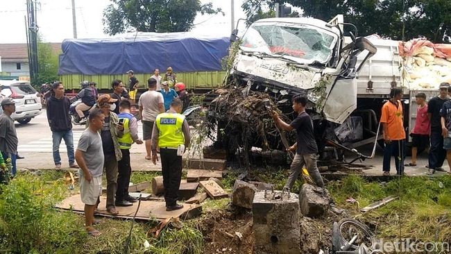 Kemudian tiba-tiba dari arah timur datang truk tronton yang melaju ke barat. Truk tronton itu lalu menabrak sebuah truk boks di depannya, sebelum akhirnya menabrak tiga motor dan terjun ke parit.