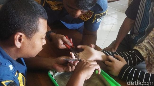 "Kemudian saya bawa ke sini, ke Damkar. Panik ya karena besok anaknya ujian dan jari sempat bengkak, nangis juga karena sakit," lanjut Suroyo.