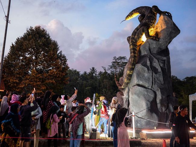 "Kalau dirata-rata sehari 2 ribu orang bisa lebih. Sampai pemuda di sini terus melakukan penjagaan termasuk mengatur lalu lintas juga full 24 jam. Ada yang memang berfoto dengan patung biawak ada juga yang live TikTok atau Instagram," kata Budiarto, Minggu (27/4/2025).