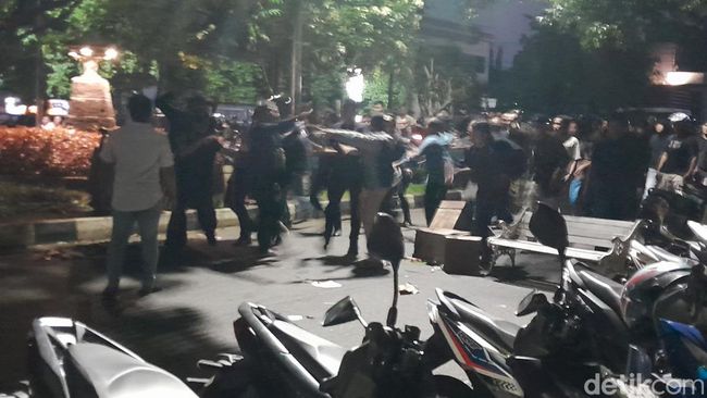 Demo buruh di Kota Semarang berlangsung ricuh. Beberapa massa aksi mengamankan diri di area kampus Universitas Diponegoro (Undip) Peleburan yang tak jauh dari kantor Gubernur Jateng. Seperti apa suasana terkininya?